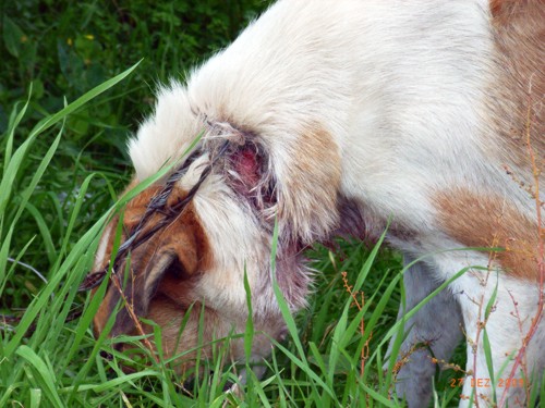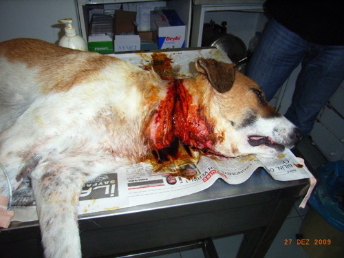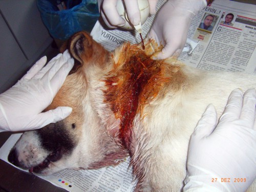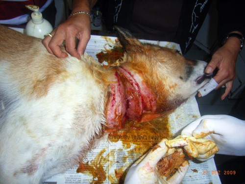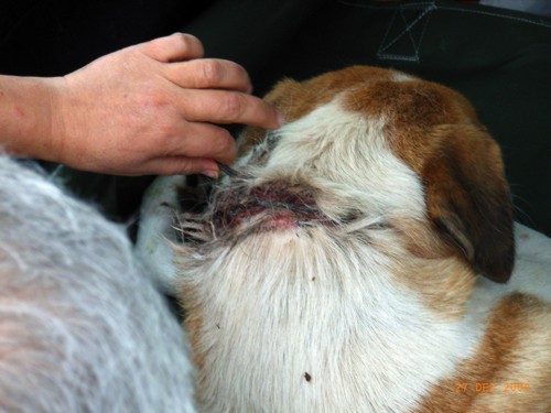 27.Dezember 09: Heute war ein Tag, auf den wir gut hätten verzichten können. Schon da war zu sehen, dass die Hündin tiefe Wunde am Hals hat.